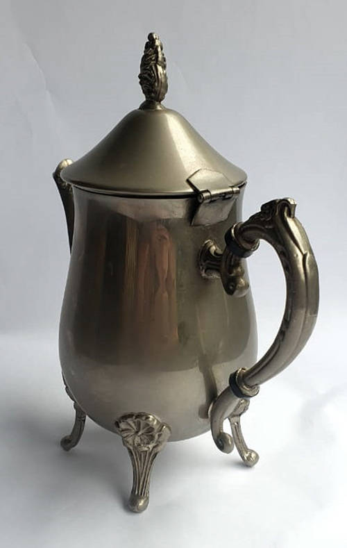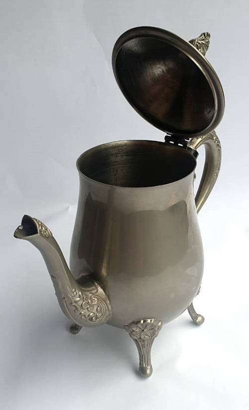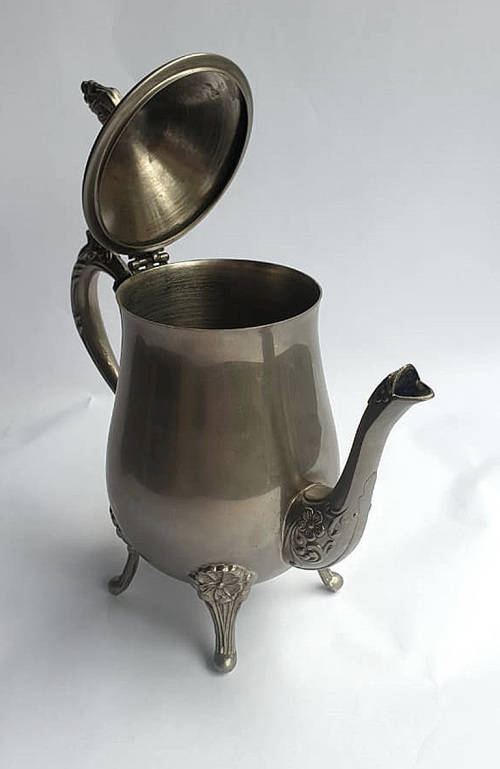 Feeling rather heavy 0,7kg. Was told its brass witha silver plating by the antique dealer that sold it to me.