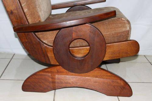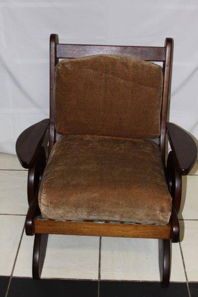 THIS BEAUTIFUL ANTIQUE RETRO STYLE MECHANICAL ROCKING CHAIR IS TOTALLY AWESOME AND HAS A TON OF CHARACTER!!! THE CHAIR IS SOOOOOO COMFORTABLE AND IS AN AWESOME READING CHAIR!!! THE SIMPLICITY OF THE CHAIR IS BEAUTIFUL AND THIS CHAIR IS REALLY REALLY VERY VERY COMFORTABLE!!! THE CUSHIONS ARE ACCEPTABLE HOWEVER THEY MAY NEED TO BE RECOVERED. PLEASE VIEW THE PICS CAREFULLY FOR MORE DETAIL AND CONDITION AS THERE ARE A FEW BUTTONS MISSING - WHAT YOU SEE IS WHAT YOU GET! POSTAGE AND PACKAGING WILL NOT BE POSSIBLE SO PLEASE ARRANGE FOR COLLECTION IN EDENVALE!