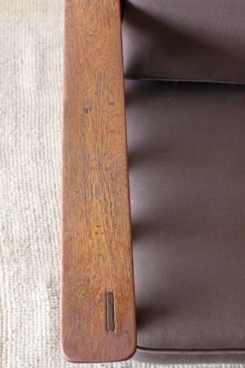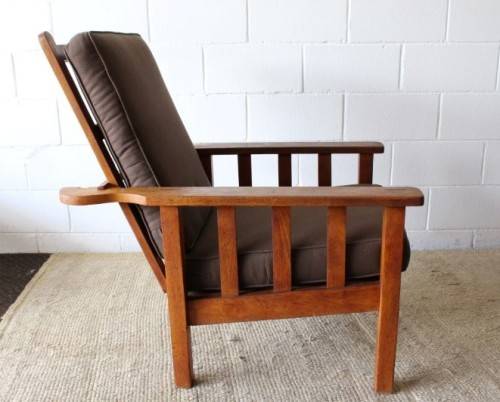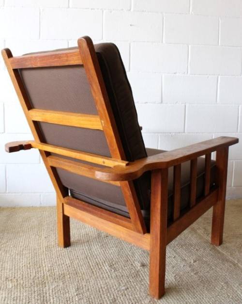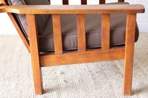 This stunning vintage solid oak Morris chair with newly upholstered cushions in a chocolate brown (outdoor) fabric is in awesome condition for its age and has most likely recently been restored. We have two chairs available and the chairs are roughly the same size with a slight difference in the design. The chairs measure roughly 91cm long x 71cm wide x 103cm high. Both the chair backrests have three different seat positions. The chairs are well made and sit comfortably on the ground. They are the perfect chairs to have on a patio and would also be stunning in a sun room etc. Please view the pics carefully to fully appreciate this solidly made vintage Morris chair and to confirm the condition. Please note that the indicated price is per chair - you can purchase just one or both of them.