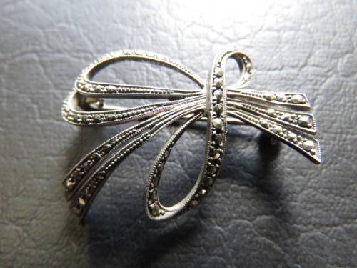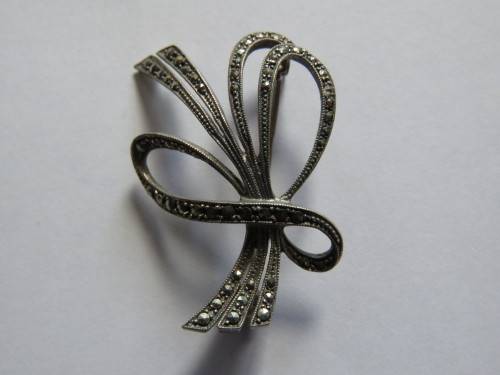 A stunning vintage Sterling silver marcasite brooch. No stones missing. It measures 38mm x 27mm and is stamped 925. Really Stunning !!!. Postage R 60.00.