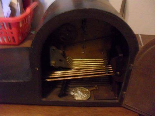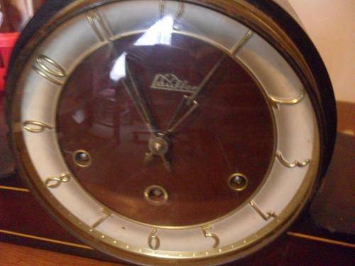 WOW....VINTAGE WOODEN MANTLE CLOCK BY KARL LAUFFER.....WESTMINSTER CHIME.....HAS A PENDULUM BUT NO KEY...WORKS.....CIRCA 1935'S....57 CM X 20 CM X 16 CM ......SEE PICS PLEASE.....