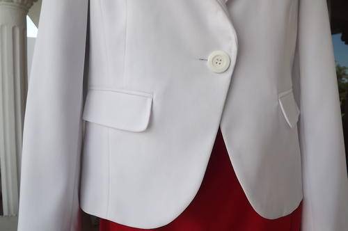 Stunning White Fully Lined Jacket by New Look Combinations for Formal or Casual Wear in size 36 - shoulder to seam 59cm - 2 dummy pockets in front - made in Romania - outer-97% Polyester 3% Elastane - Lining-100% Polyester - as new condition