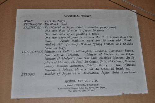STUNNING!!!! WOODBLOCK PRINT BY YOSHIDA TOSHI(JAPAN),SIGNED,VALUE R6000
