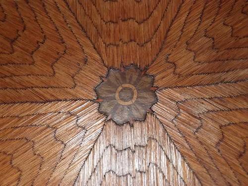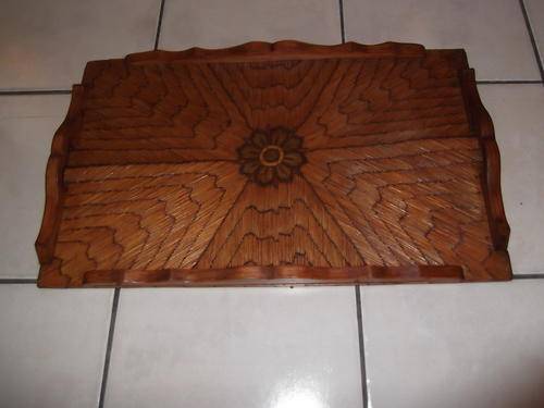 This tray has the most unbelievable design on it. This tray has been manufactured out of match sticks; every match stick has been burnt and placed to form a design. The centre piece is out leather. I have no idea of the age of this piece.