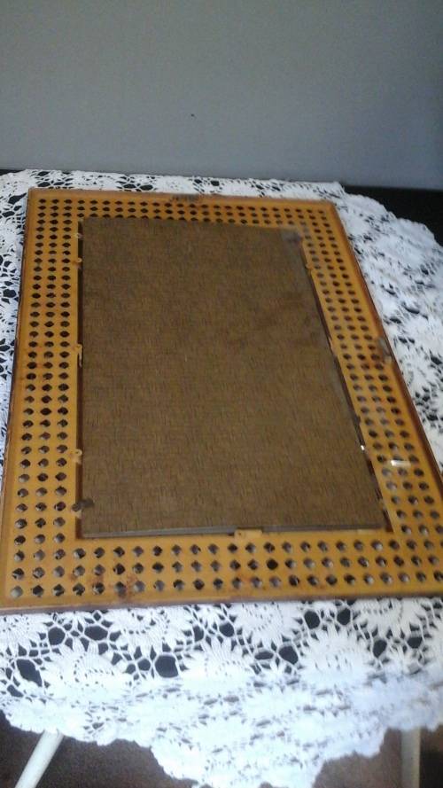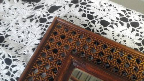 THIS BEAUTIFUL PIECE IS RECTANGULAR IN SHAPE, MADE FROM PLASTIC AND DESIGNED TO LOOK LIKE RATTAN.