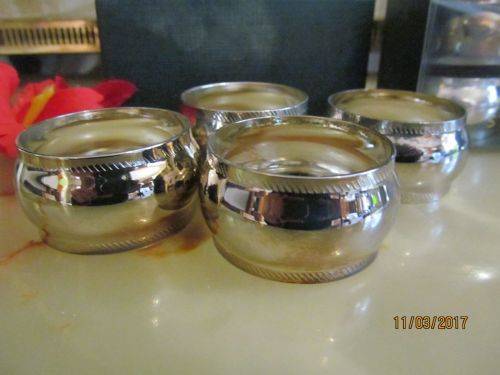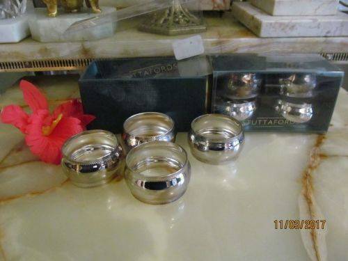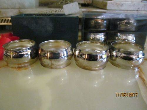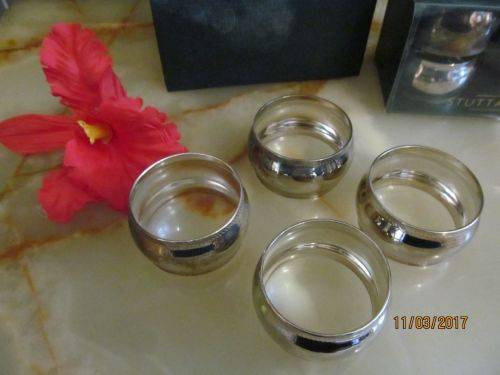 This LOT consists of Two Separate sets of Four Boxed Silver Plated Napkin rings from STUTTAFORDS. They have never been used and are perfect for use on those days when needed and the memory flashes that you HAVE THEM.