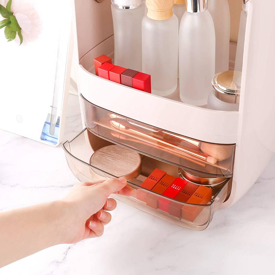 Dust-Free and Waterproof: This storage box has a transparent dust-proof and waterproof cover and drawers to protect the cosmetics(or jewellery) from the effect of water and dust. No matter where it is; on the dressing table or countertop in the bathroom, bedroom or powder room, your product will be safe, dry and secure.