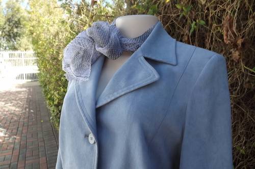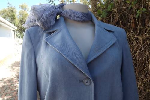 Styled light steelblue lined jacket.Size 34/10 by Woolworths. In soft polyester fabric.As new