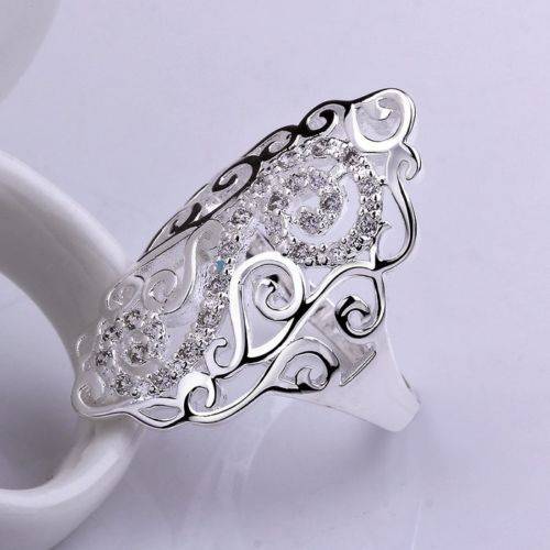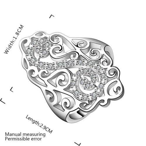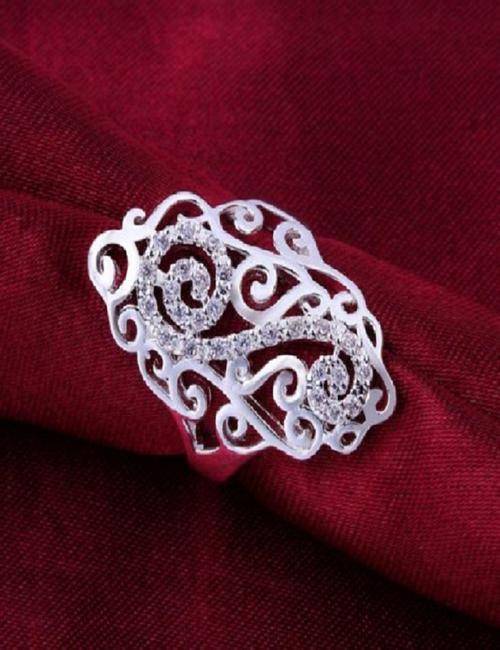 Stylish 925 sterling silver plated classic filigree style ring with crystal inlay - Size 8/Q