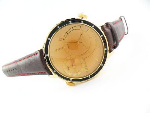 Stylish and Large Metal Case 2 Movements With Leather Band Men's Watch