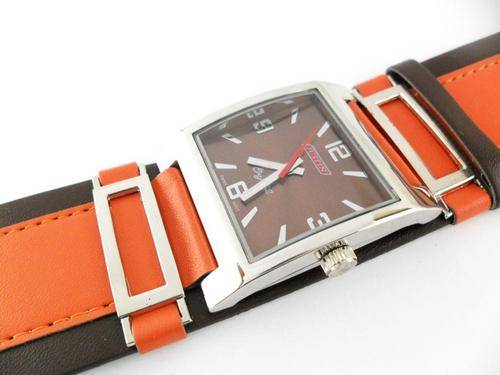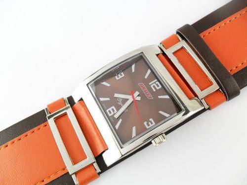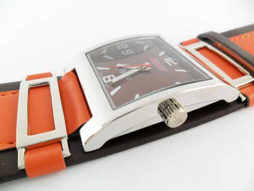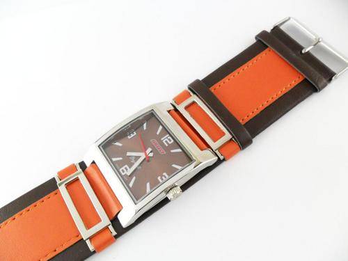 Stylish and Large Metal Case with Leather Band Men's Watch