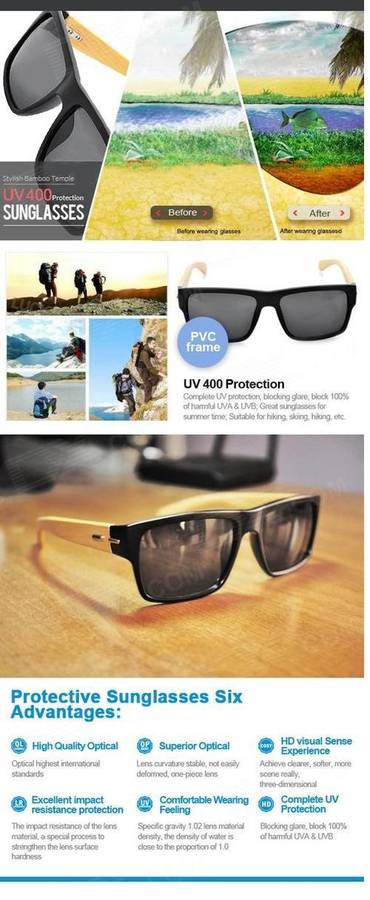 Material: PVC frame + bamboo temple + resin lens