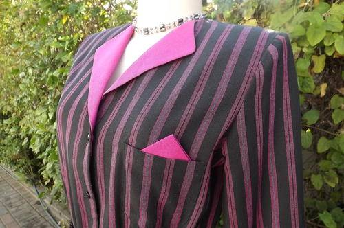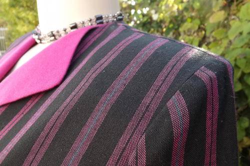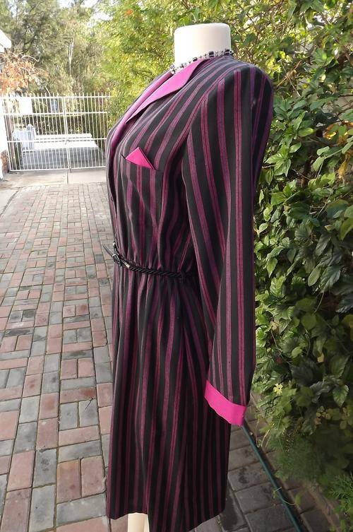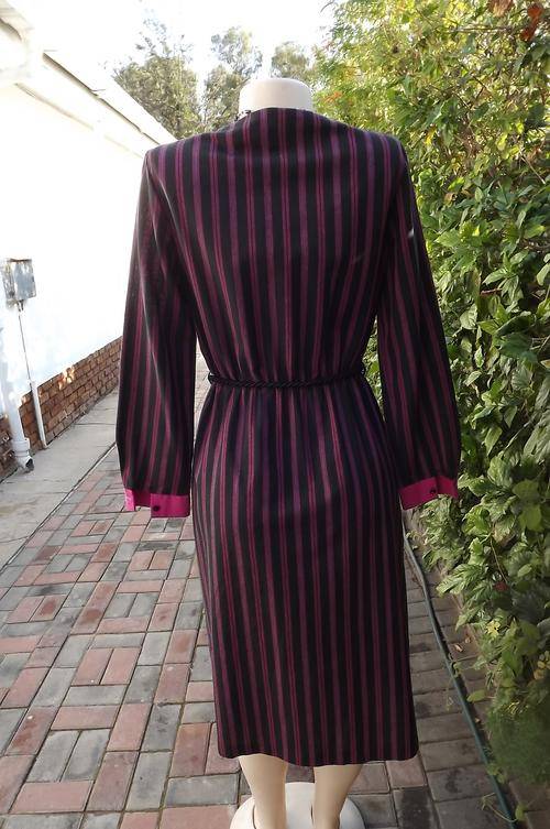 Stylish black long sleeve Vision dress with cerise stripes,collar and cuffs.Size 35/11.Bust 94 cm.