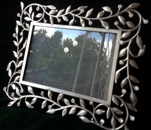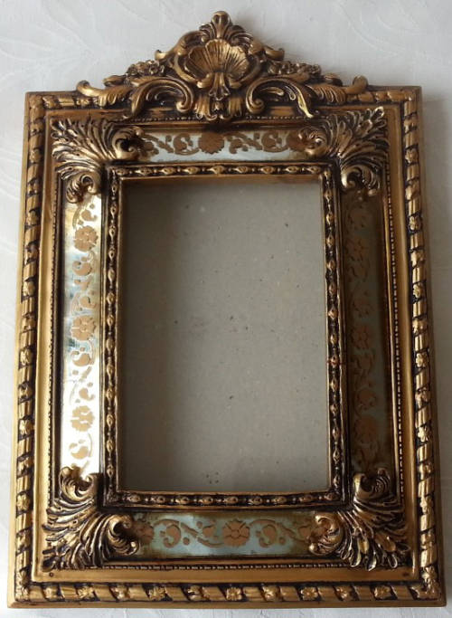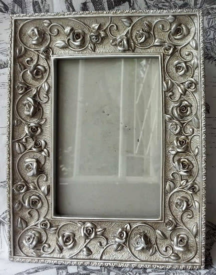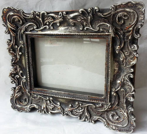 STYLISH, BRONZE COMPOSITE PHOTO FRAME WITH GLASS, LENGTH 23.6cm, WIDTH 18.5cm. IN GOOD USED CONDITION.