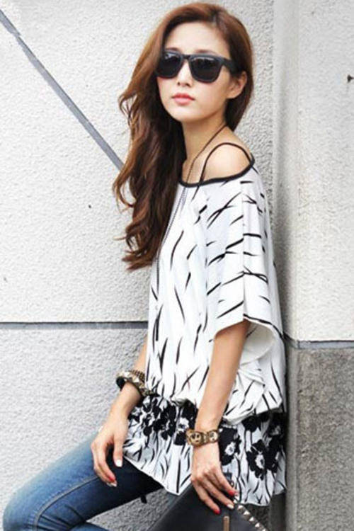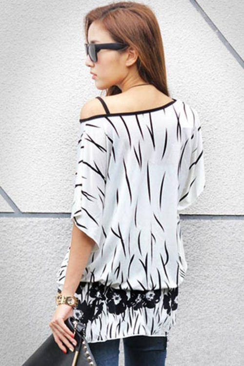 STYLISH CONTRAST PATTERN PRINT CHIFFON BLOUSE