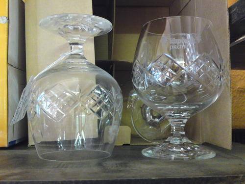 KLIPDRIFT PREMIUM, Cut Glass Brandy Balloons. These are authentic Klipdrift Premium balloon goblets/glasses issued to me when I was still in the industry. These glasses are not available to the general public as such and would be a desirable collectible set.