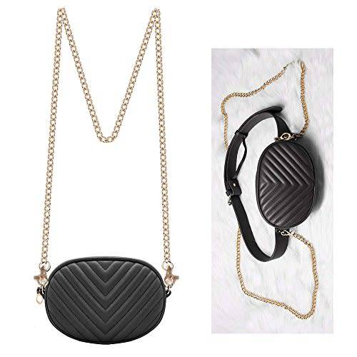 ¿2 FASHION DIFFERENT BELT : Waist bag have 1 metal chain strap& 1 adjustable leather belt for different carry ways,You can use as waist bag ,chest bag,crossbody bag.