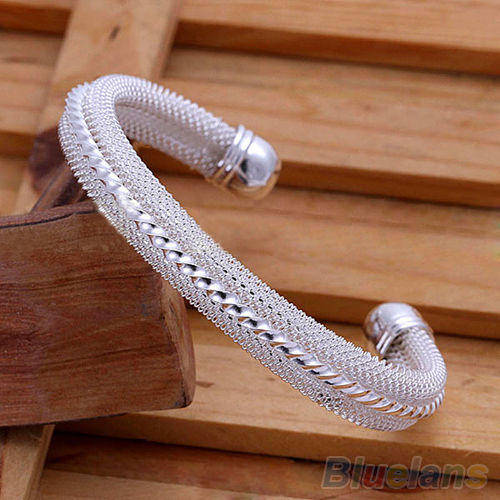 Stylish New 925 Silver Plated Mesh Twisted Band Bracelet Bangle