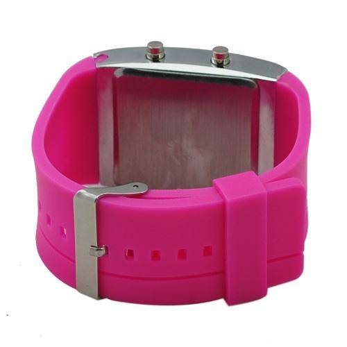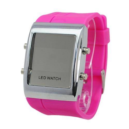 Stylish Red Light Digital Mirror LED Wrist Watch with Pink Silicone Band