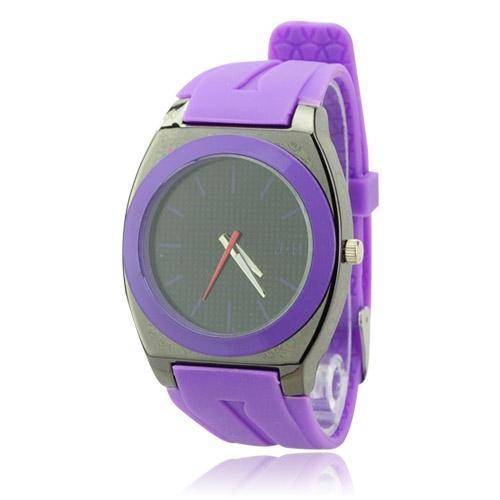 Stylish Round Dial Silicone Band Quartz Movement Wrist Watch -Purple