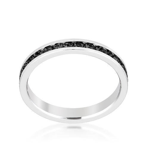 White Gold Rhodium Bonded Stacker Ring with Round Cut Black CZ in a Channel Setting in Silvertone
