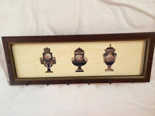 Most beautiful handmade decoupage key or kitchen towel rack, ideal for the stylish home foyer or classical bathroom/kitchen or living room. Measures 49cm X 17cm. Dark brown with antique gold colour on inner edge. Six dowels for hanging. No pick up, postage only.
