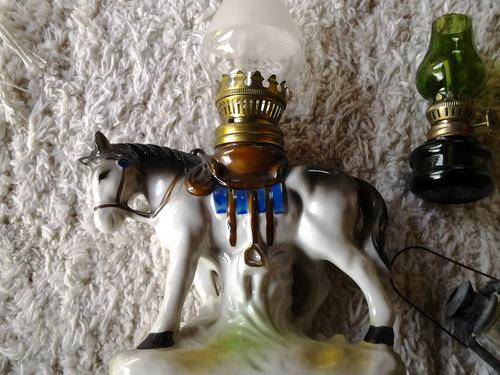 Size Horse - 20cm, Green lampie - 10cm, Silver 10cm. The horse is def in working order as it has a rope inside, the green one also has a rope inside - for lighting purposes. THe silver one is purely for decorative purposes - is a sharpener.