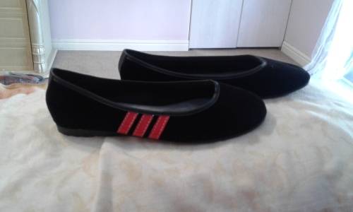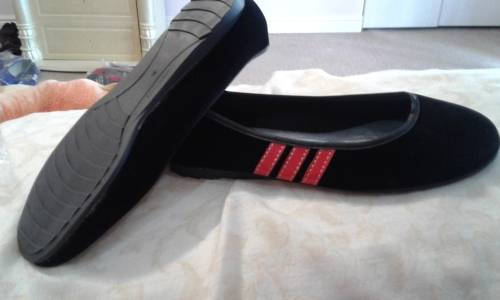SUEDE PUMPS- BLACK WITH RED STRIPES.