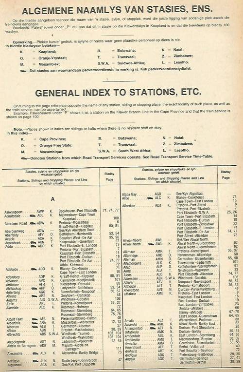 Suid-Afrikaanse Spoorweg Tydtafel No.171. 1973. SAR Timetable. SCARCE!