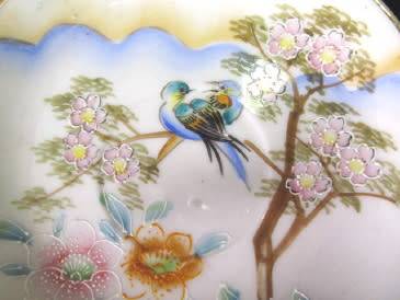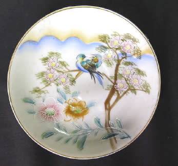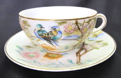 A superb Suisei hand-decorated porcelain cup and saucer, made in Occupied Japan after the Second World War between 1947 and 1952. In good condition -- no chips, cracks or crazing. Diameter (saucer) 131 mm, (cup) 87 mm.