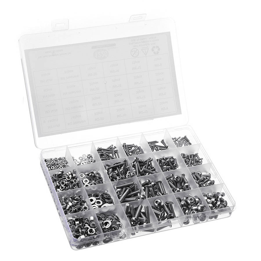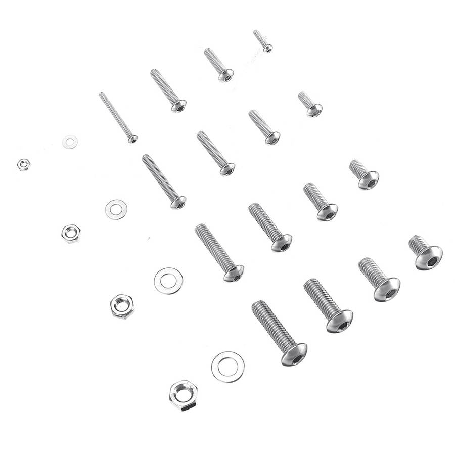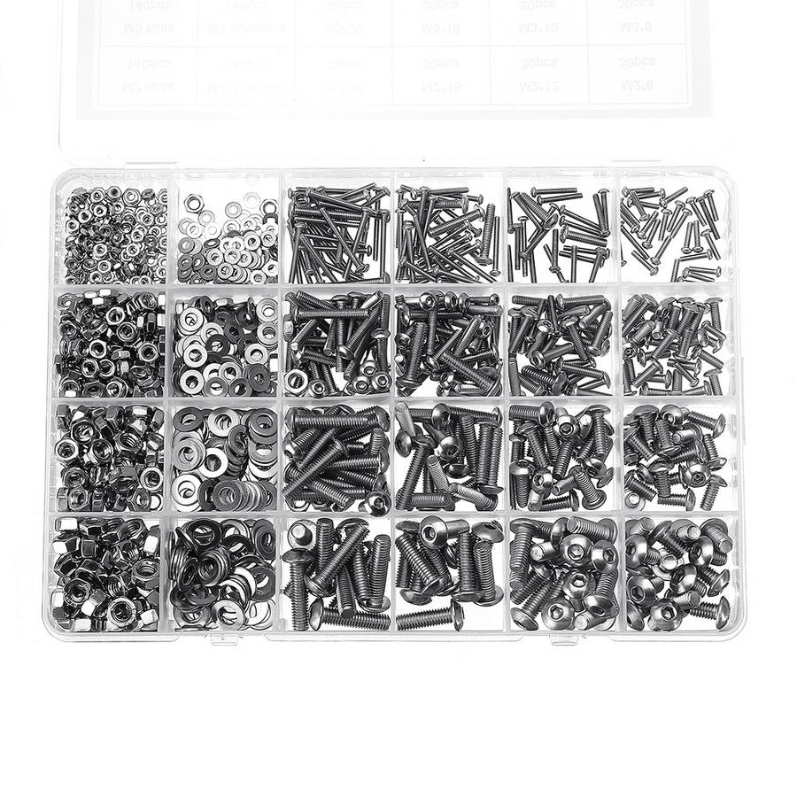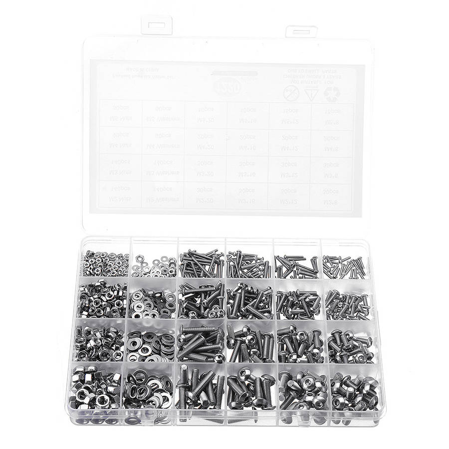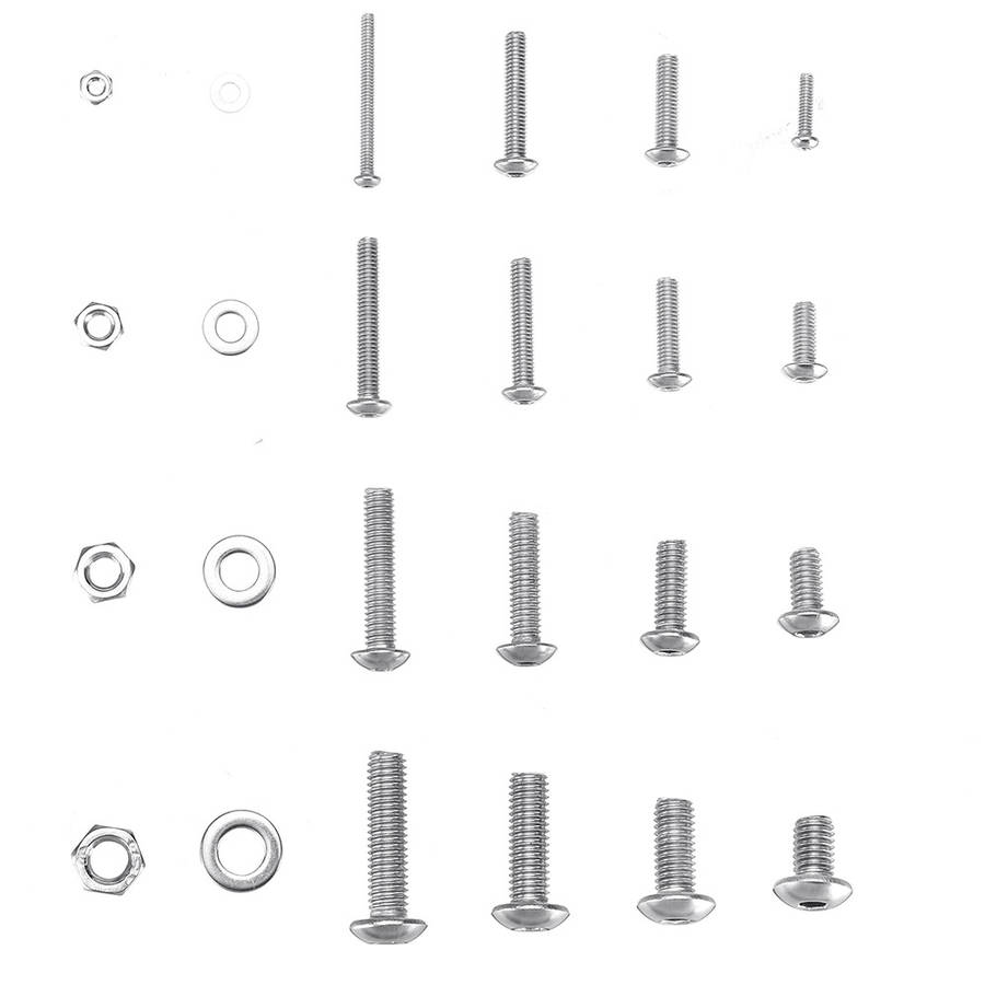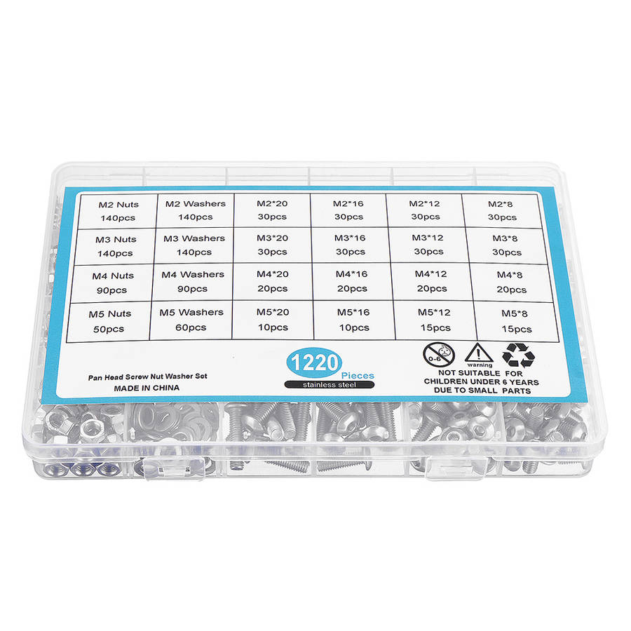 Description: Material: Stainless Steel Color: Silver Size: M2 / M3 / M4 / M5 Screw Drive Type: Hex Socket Screw Head Type: Pan HeadFeatures: - Made of stainless Steel material,Wear resistance, anti-rust, durable. - These screws and nuts will be great replacement for industrial and construction fasteners. - Ideal for use as fixing component, industrial and construction fasteners where you need hex socket button head screws. - Can be used in home and office appliance, machinery, furniture, repair, inventions and other projects. Package Included: 1220 x Screws Nut Washer Set