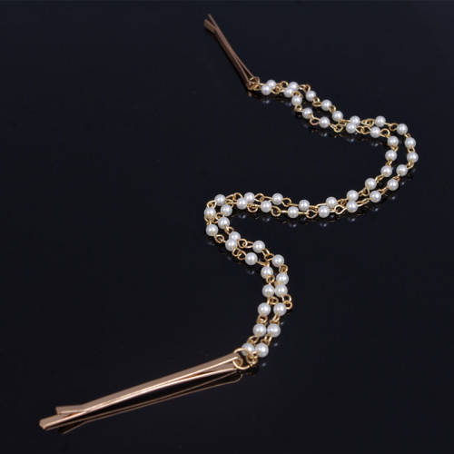SUMMER BRIDAL SALE!! MARKED DOWN - WEDDING BRIDAL HAIR CLIPS WITH FAUX PEARL DOUBLED CHAIN