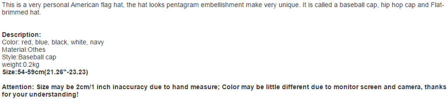 Zanzea American Flag Star Cap