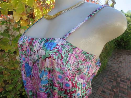 Summer strappy dress in array of spring flowers.Made by owner.Size 38/14.Fine condition.
