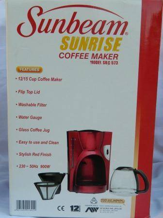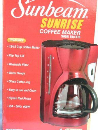 v 12/15 Cup Coffee Maker. Flip Top Lid. Washable Filter. Water Gauge. Glass Coffee Jug. Easy to use and Clean.