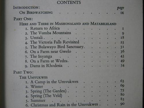 Juta & Co, 1951. Hard cover (cloth) with dust cover; 178 pages. Good condition. Some foxing. Gift inscription in front. The dust cover is worn and torn. Shipping to anywhere in SA is R20. "These delightful descriptions of Rhodesian bird life are interspersed with the author's comments on people books, gardens and politics."