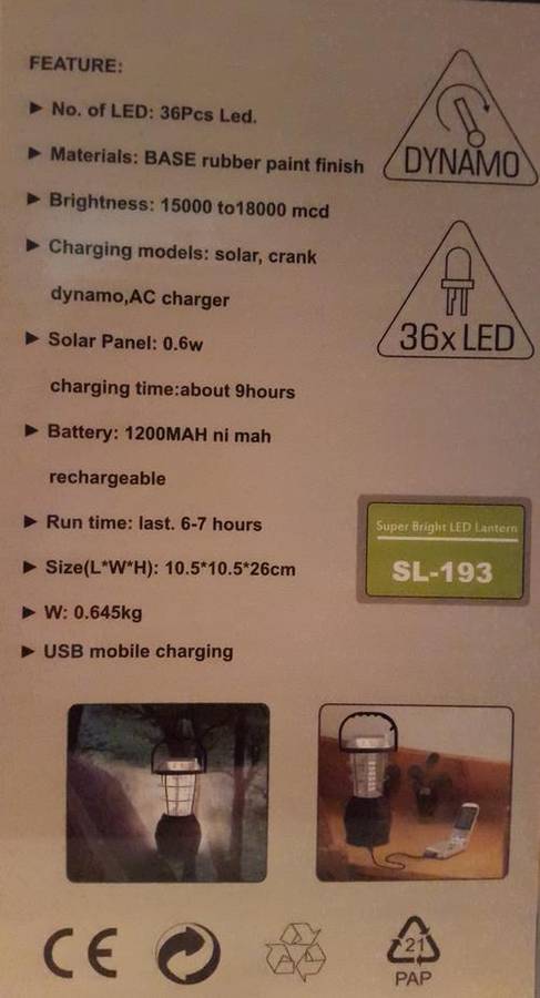 SUPER BRIGHT HAND CRANK SOLAR LED LANTERN - with 36 LED