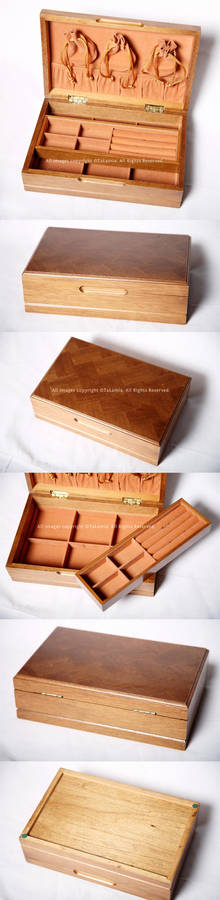 Super luxurious large wood and velveteen jewellery box with multiple compartments and storage pouches