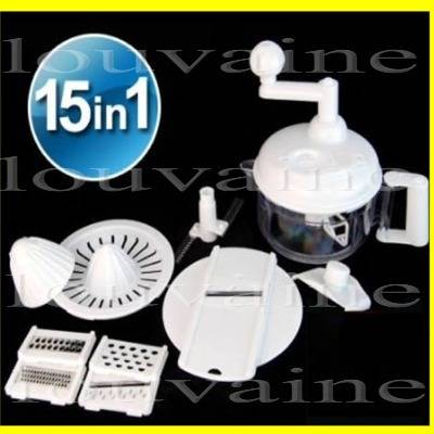 This 15 in 1 Super Mixer is a great addition to any kitchen! Incorporating numerous essential uses such as slicing, grating, shredding, chopping, whipping, juicing and more. Use the Super Mixer to prepare fruits and vegetables for salads, stir fries and more. Even works perfectly for corn, potatoes, onions, celery, bell peppers, zucchinnis etc. Attach the citrus juicer attachment to use this device squeeze fresh and healthy juices and other citrus juices. Ideal for chopping soft meat and mixing tuna salad and even crushes ice for refreshing drinks! This machine has been designed to create perfect and professional results for food preparation in the most convenient way and at the shortest time possible. There are endless possiblities and combinations to use on the Super Mixer so try one out for yourself today! Ideal for: Chopping, Blending, Whipping & Mixing Slicing, Shredding, Julienne, Juicing & Grating Easy to Clean Simple to Use |