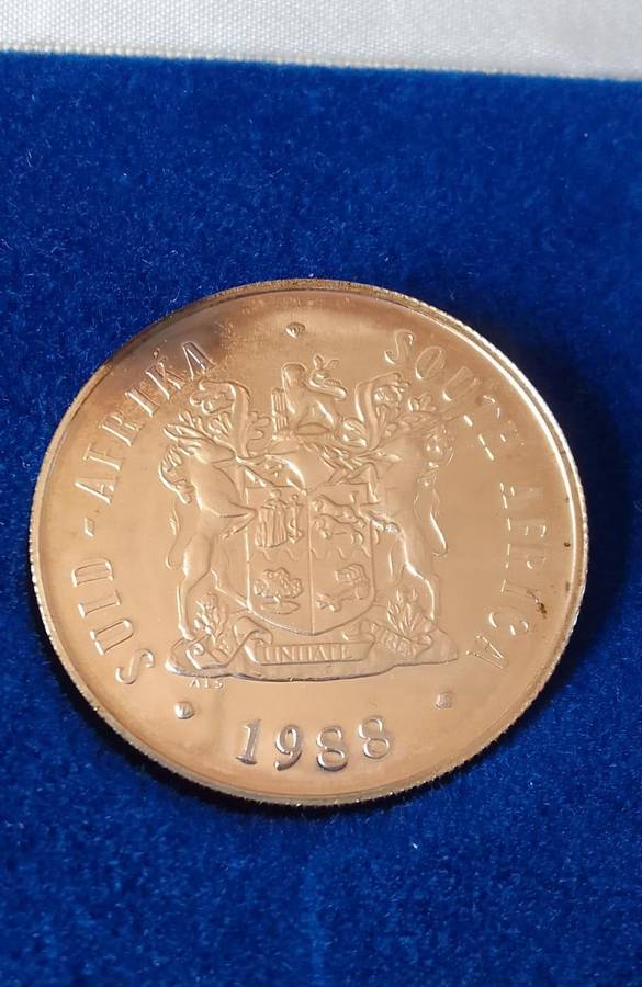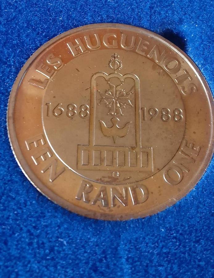 1988 LES HUGUENOTS R1 PROOF COIN IN SA MINT BOX - LOVELY TONING;