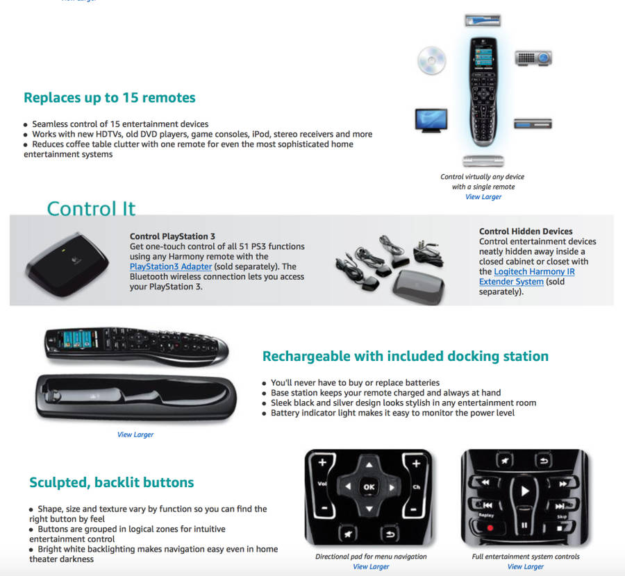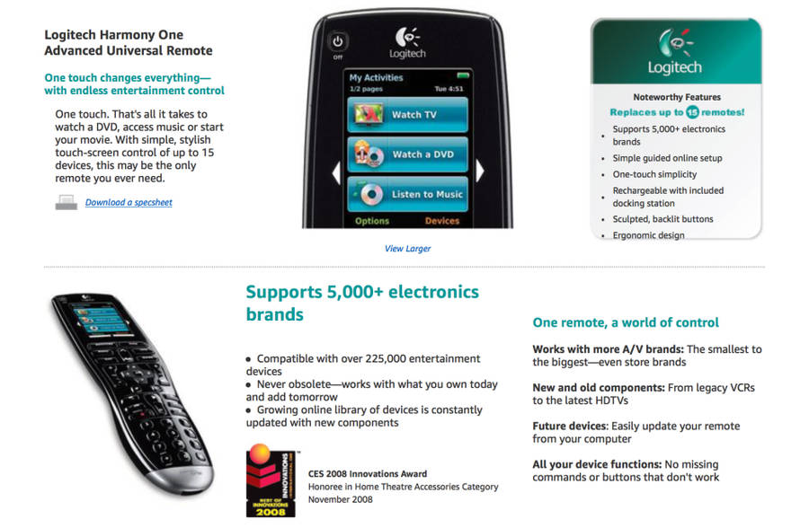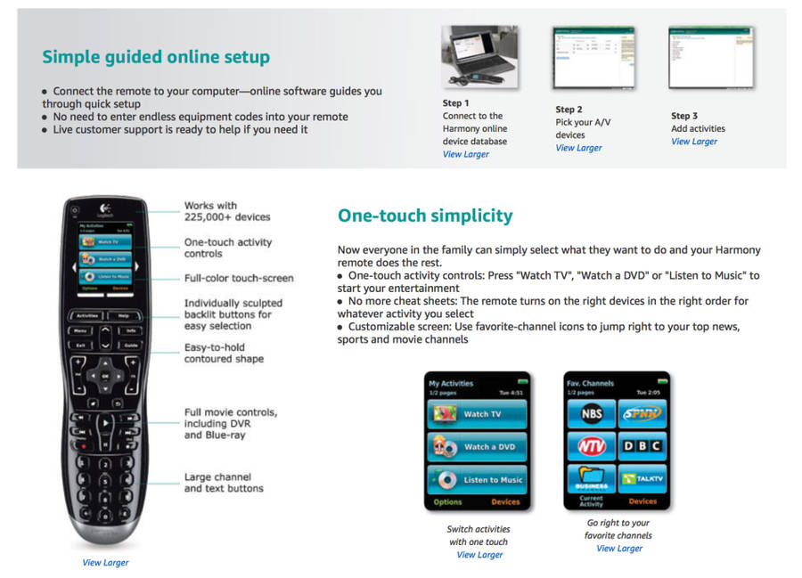 Harmony One - Advanced Rechargeable Touchscreen Colour Universal Smart Remote w/ Docking Station