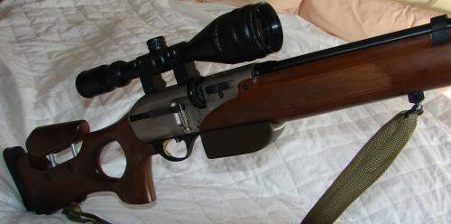 Walnut stock with thumb hole, adjustable cheek and stock tail