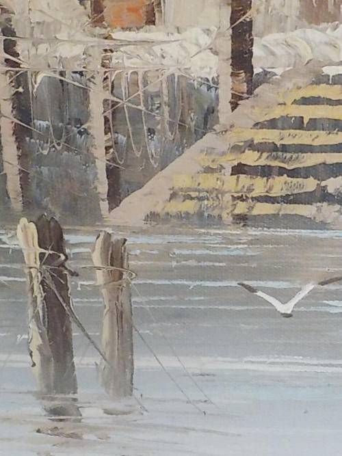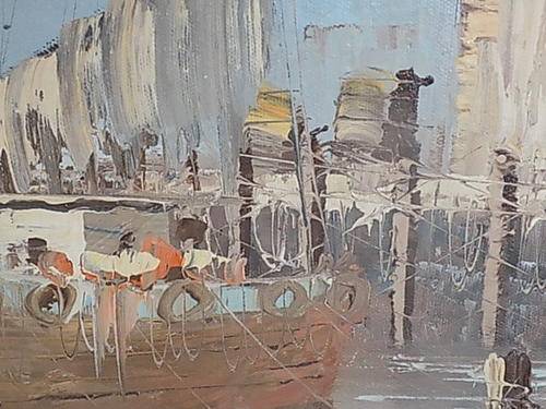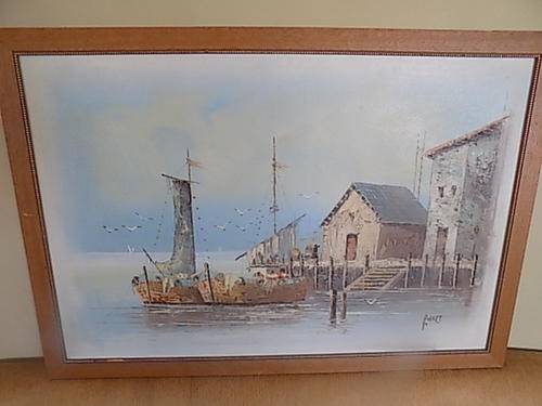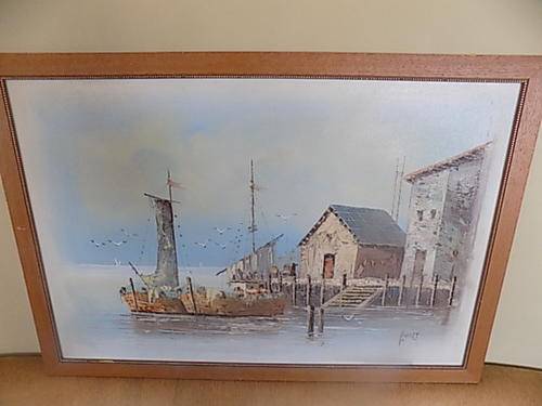 Superb Large Dock Side Signed Oil Painting by ROBERT