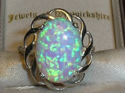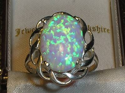 SUPERB SOLID SILVER FIERY OPAL SOLITAIRE RING - N
