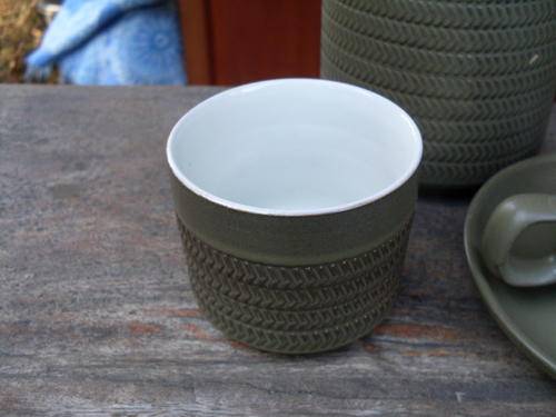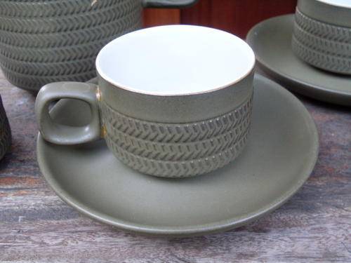 consists of sugar bowl, 4 cups and saucers and the coffee pot.