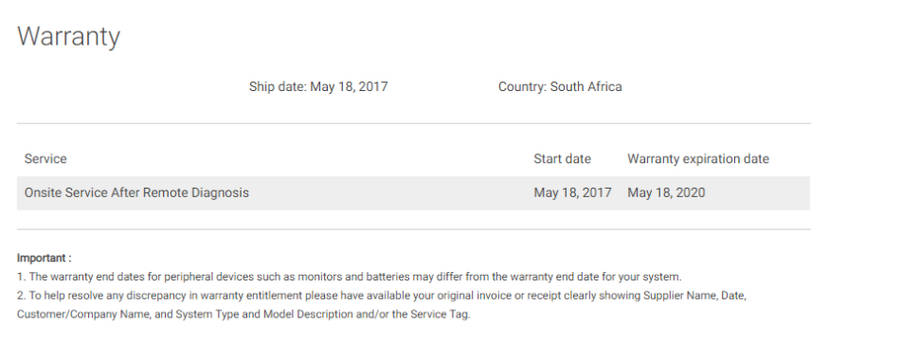 WARRANTY TILL MAY 2020 WITH DELL