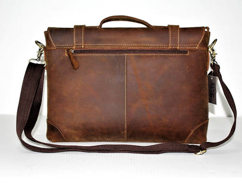 This bag is made of superior genuine full grain cow leather, which the leather is very thick and top quality. It can be carried as a everyday bag . The bag size is large enough to fit for a 14-15 inches laptop.