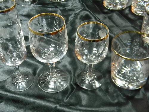 Superior Quality Cut Crystal set of 24 Gold Rimmed Drinking Glasses