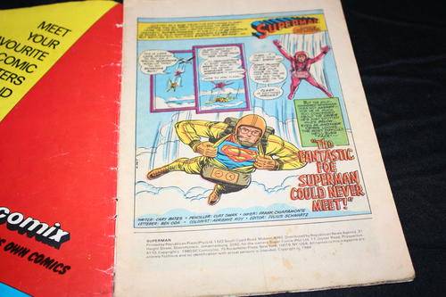 Superman . The front page has a book exchange stamp on, pen marks on the top and the top part of the spine has torn. Postage R35.00