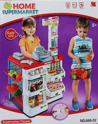 Shelf prices along with a cash register provide fun and encourage early math skills.